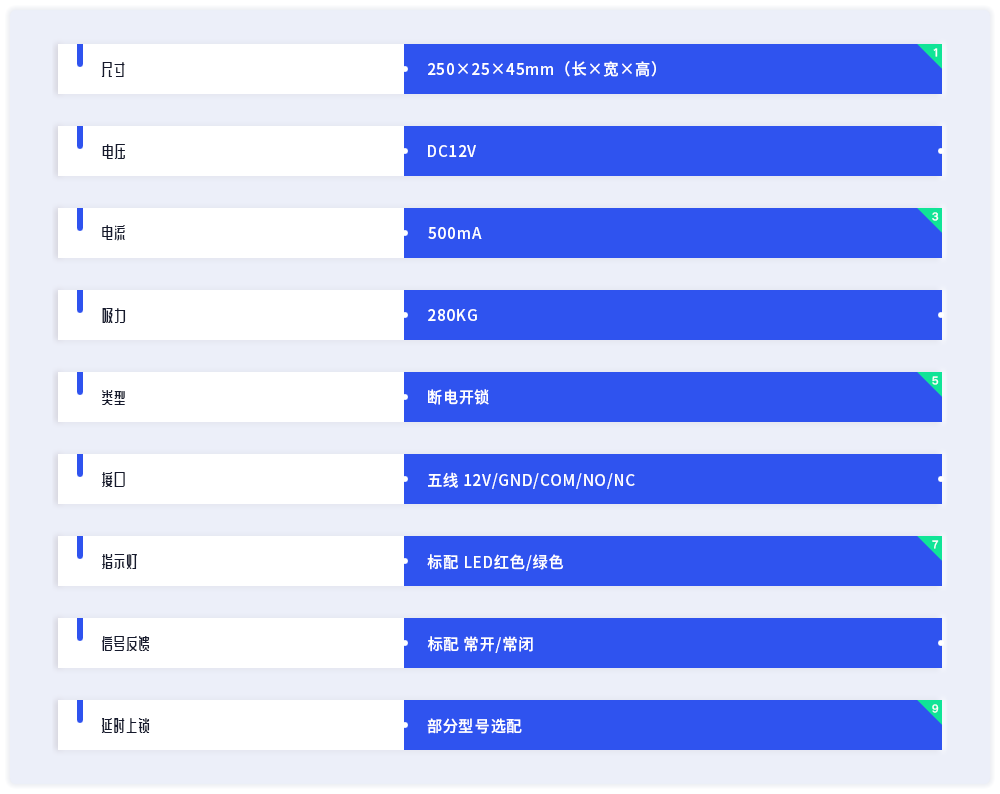磁力锁是利用电生磁的原理,当电流通过硅钢片时,磁力锁会产生强大的吸力紧紧的吸住吸附铁板达到锁门的效果。